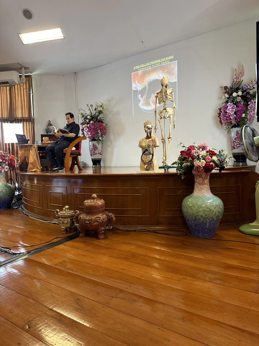 Velika predavalnica, kjer Mantak Chia predaja znanja, je zunaj obdana z visokimi in mogočnimi drevesi, katerih posebno energijo začutiš ob poti, okrog pa je predavalnica obdana z vodo. Strop je okrašen v barvah in simbolih metafizike, seveda pa kakšen kuščar ali dva tudi ne manjka.